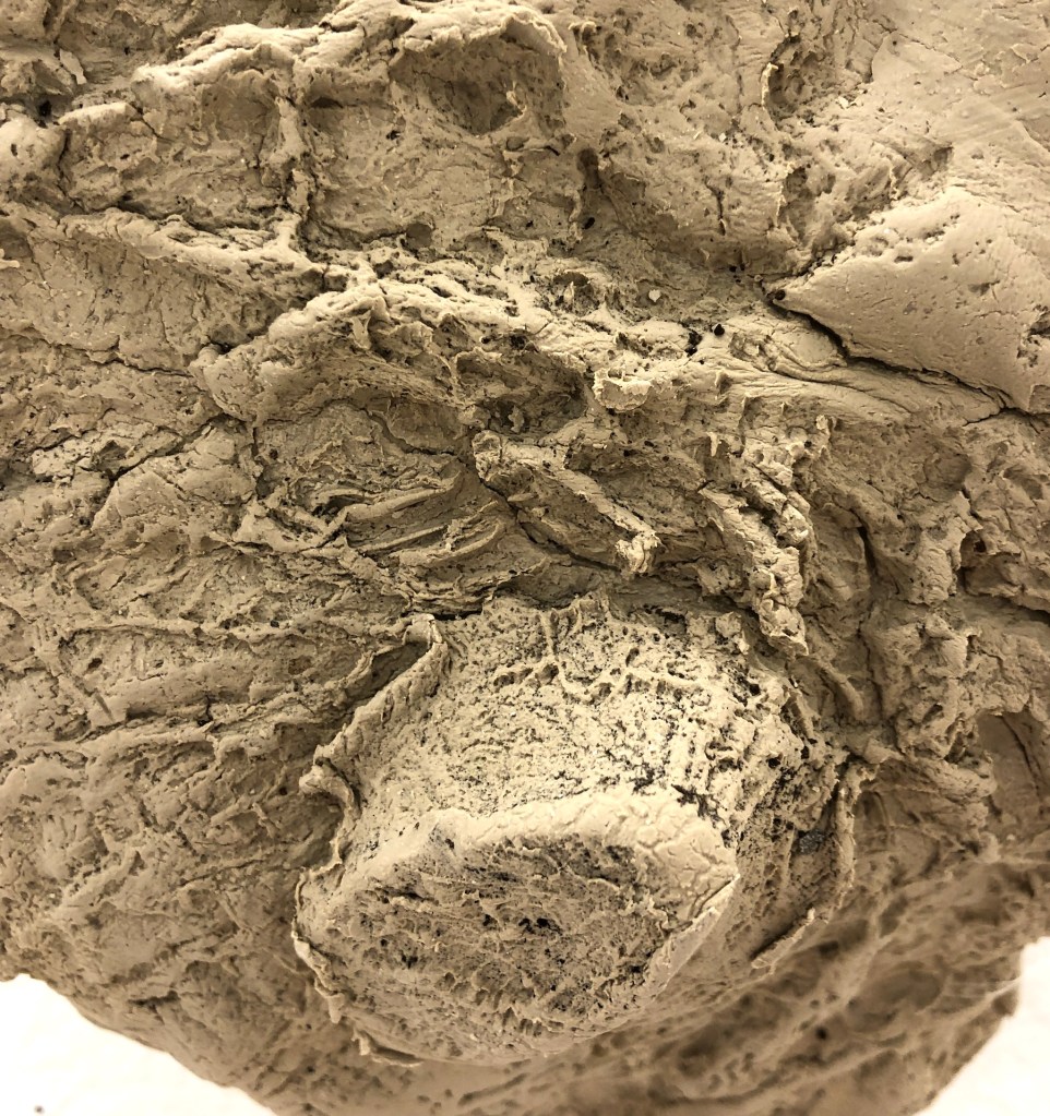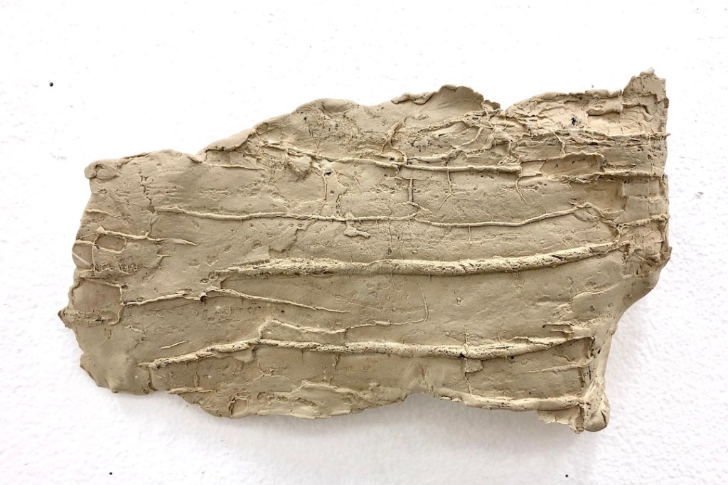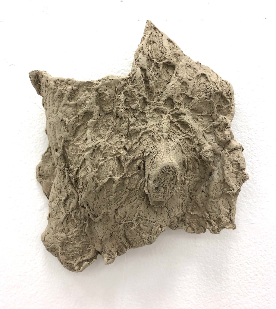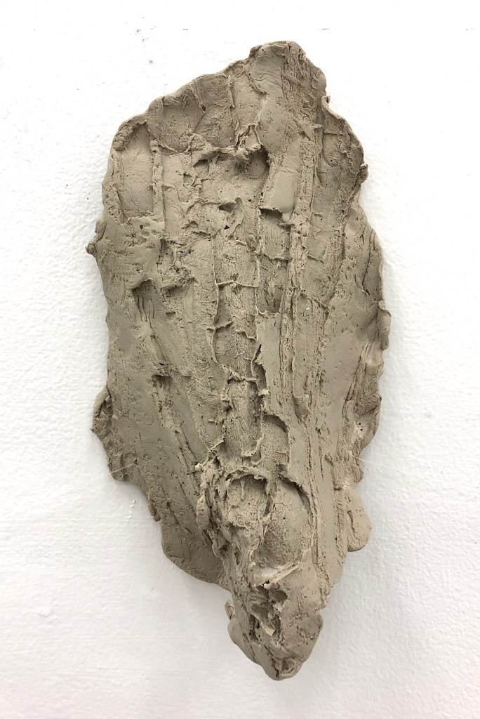 This is an ongoing series of clay work created by wrapping and pushing clay into the bark of trees. The outcomes of the textures and forms of these pieces are often by chance and dependent on the collaboration between non-human organisms (the trees) and myself. I’m often surprised by the intricacies and specifications created in each one of these works. This series has over 35 pieces, with 15 previously installed on the wall. Each piece is an individual size, ranging between 5 inches- 24 inches. Detail photos below.