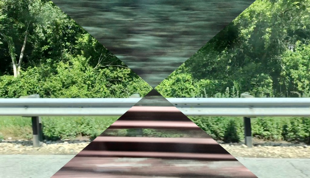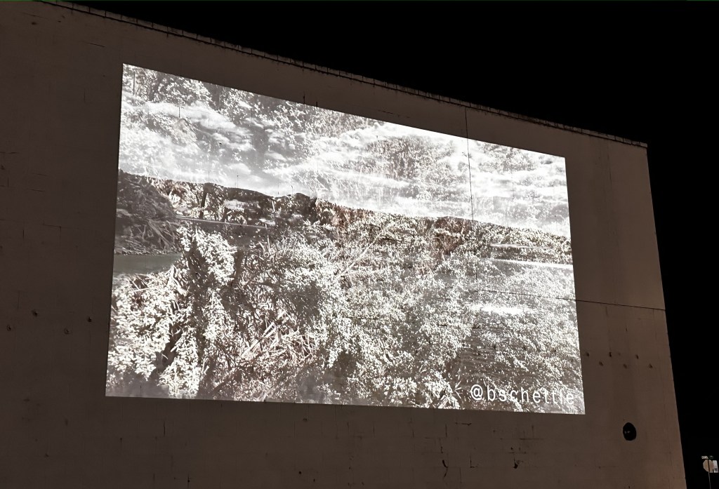 This video piece titled (Paradigm) Shift was on display for both the Flipside Fest 2023 and Surel’s Place First Friday Illuminate! in Garden City, Idaho. This work is a collection of videos taken while traveling across the United States. (Paradigm) Shift explores shifting views and perspectives of various landscapes influenced by both introspection and video layering techniques. The images below include the outside video projection and stills from this collection of work. Photo documentation of projected video taken by Alyse-Ambriel Hanna.